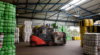 The container is weighed when it’s empty and is subsequently filled with bales and/or bags from the storage buildings in conformity with the customer’s order. Before the goods are placed in the container, the forklift driver scans these to realize a correct registration of the outgoing goods.